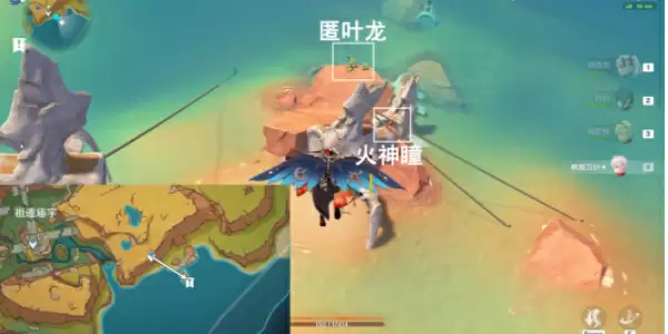 1、传送祖遗庙宇东南方向锚点,往地图的东南方向飞,前往海滩边,附身海滩边的匿叶龙。
