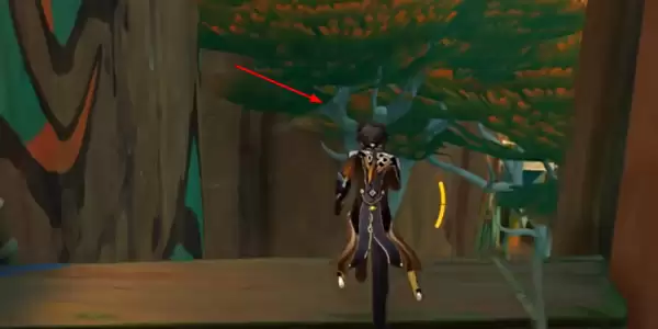 打开地图传送到悬木人部落下图标记的传送锚点,出锚点后向后转来到下图标记的大树位置跳下去就可以发现山脚下的屏障,使用石环打开屏障取走其中的探索奖励即可。