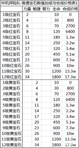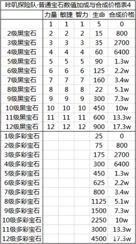 咔叽探险队普通宝石的合成价格表一览: