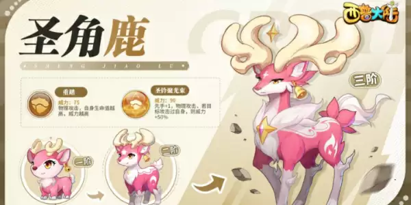 圣角鹿是西普大陆四大主宠之一,有着极强的魔法攻击,对敌人可以造成石化效果。同时还可以解除自身的所有异常和减益状态。