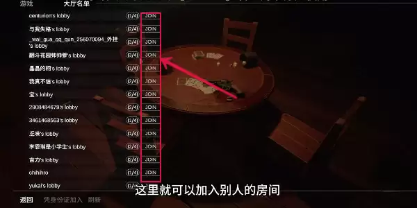 3、在大厅列表中我们可以路人创建的房间,我们可以随便选择一个房间,然后点击后方的“JOIN”加入房间。