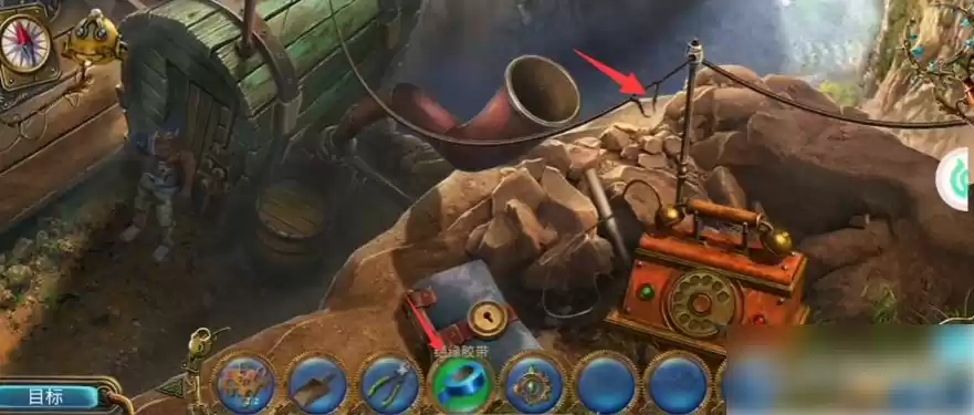 1.密室逃脱21遗落梦境电话这里,点击【绝缘胶带】,去修箭头指向的坏的电线