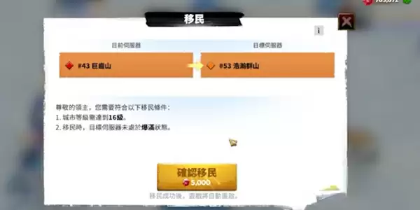 4、玩家的城市和部队不能处于战斗中,否则无法执行移民。