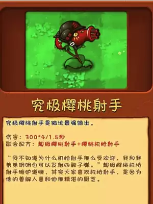 融合配方超级樱桃射手+樱桃机枪射手伤害300*4/1.5秒