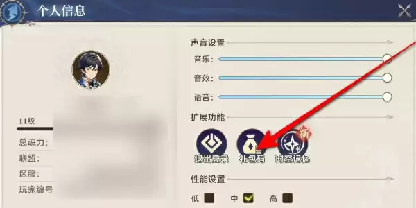 2、打开个人主页选择礼包码选项点击进入。