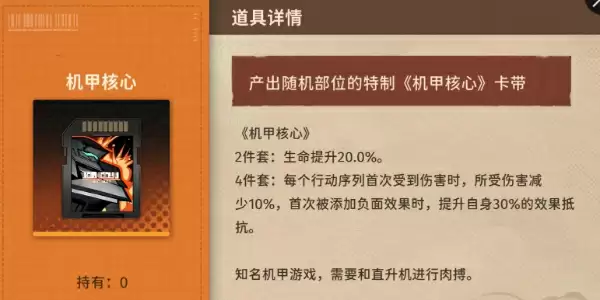 4件套:每个行动序列首次受到伤害时,所受伤害减少10%,首次被添加负面效果时,提升自身30%的效果抵抗。