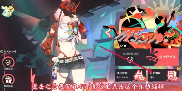 3、和蒙塔娜对话进入活动界面,然后点击“乐曲编辑”选项。