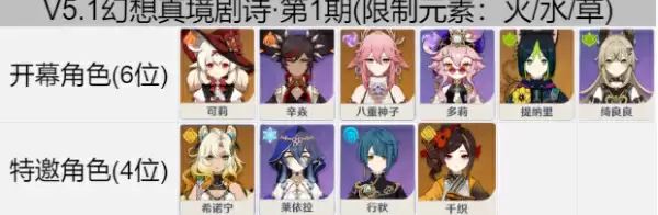 原神5.1幻想真境剧诗阵容推荐,新版本幻想真境剧诗更新后,限定的元素是火、雷、草,很多玩家不知道怎么配队才可以通过,下面小编就为大家带来原神5.1幻想真境剧诗平民配队通关攻略,感兴趣的小伙伴可以来看看。