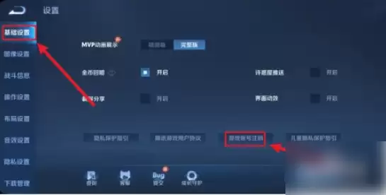 然后来到基础设置,在这里可以看到游戏账号注销,点击一下