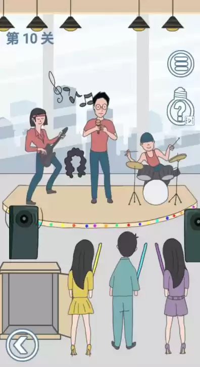 2、然后是挪开靠近架子鼓的音响获得黄色荧光棒,滑到左边。