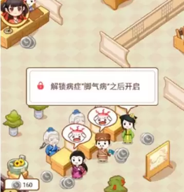 进入游戏主界面点击病症找到脚气症病症,查出解锁相对应的条件:解锁脚气症需要声望达到60并且花费4200银币之后才能够研习,进行病症解锁,解锁病症之后才能够解锁员工功能。