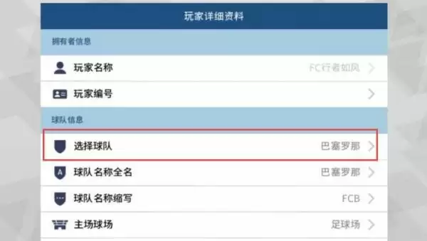 首先需要点击右上角的【其他】,再点击左上角的【玩家信息】,接着点击【玩家详细资料】,点击页面中的【选择球队】,选择的球队即可。