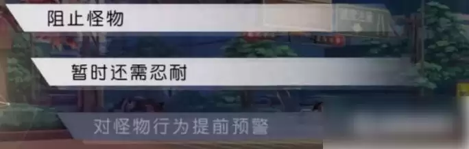 9.第三天,今天早上的剧情决定了进入哪一条结局。若选择【阻止怪物】,则进入珈儿线【神之一闪】结局。若选择【暂时还需忍耐】,则进入晏华线【白夜之笼】结局。在达成以上两个结局的情况下,解锁第三个选项,进入【神明坠落】结局。
