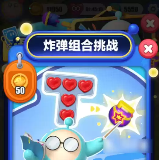 到了最后的一个关卡操作就比较简单,建议玩家可以把炸弹组合在一起,例如可以把螺旋桨和下面的这些炸弹直接的置换,在更换之后就可以形成一个强大的效果,马上就可以迅速的清屏,很快就能完美的通关。