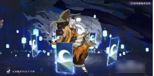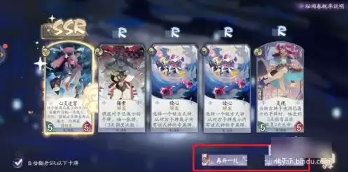 第六步,式神显示完毕后,就会进入到抽卡页面,可以勾选页面左下角的“自动翻开SR以下卡牌”,快速完成抽卡。