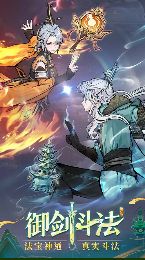 御剑纵横,即时斗法|《问剑长生》是雷霆全新3D御剑放置修仙手游。在这里,你可以体验沉浸式3D御剑空战斗法,参与超过百人的空中斗法;施展真灵血脉、召唤圣兽法相,统御威名赫赫的灵兽和法宝……