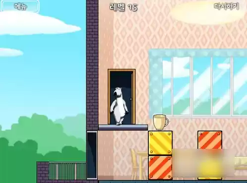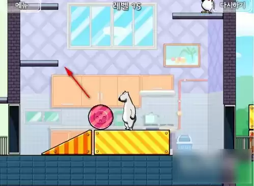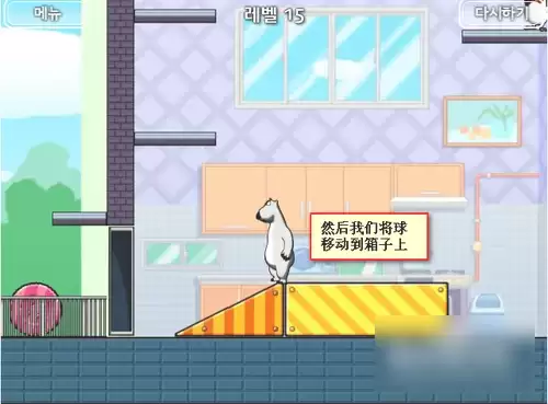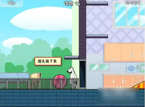 跳下来后我们顶上方的球,将其顶下来,这里我们可以先将左边的椅子往左边推靠住桌子
