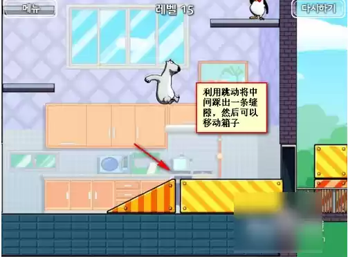 然后跳到最右边将箱子推过去,这里注意推的位置要稍微靠住椅子,不要碰了桌子*好!