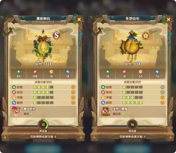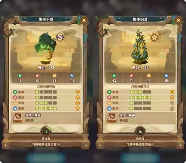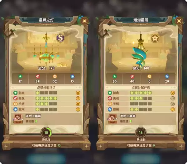 注意分数有随机性,如果没有S的话可以多RE几次,熟练度等级也影响分数,多打造几次即可。