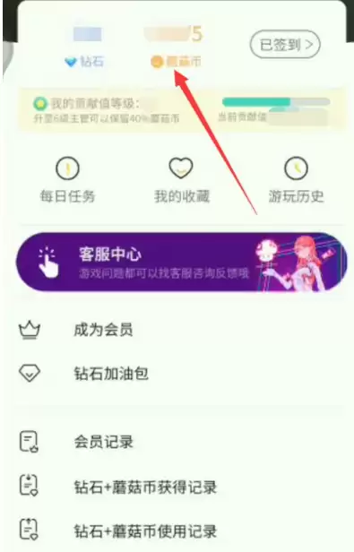 如图所示在说明中查看到【游戏时优先使用蘑菇币】(游戏时间取决于蘑菇币数量)