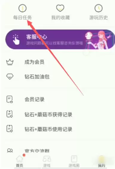 打开蘑菇云游,点击【我的】。点击【蘑菇币】在说明中查看到【游戏时优先使用蘑菇币】(游戏时间取决于蘑菇币数量),点击【每日任务】,所示点击【去完成任务】获得蘑菇币,消耗蘑菇币即可获得无限游戏时间。