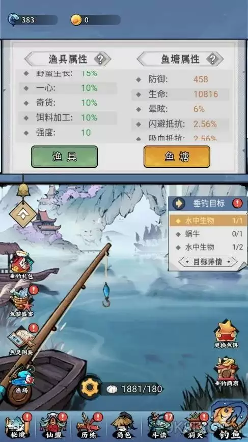1、通过钓鱼可以获取鱼灵,鱼灵可以装备到鱼塘中,获取对应鱼灵的属性。