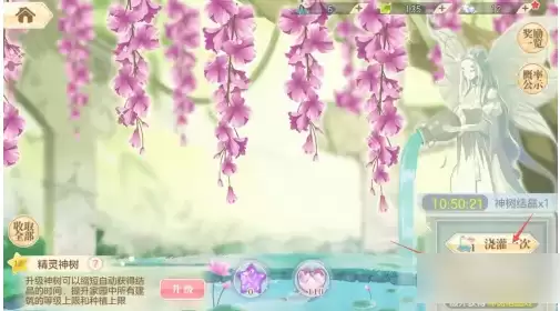 在精灵神树中点击右下角进行仙露的灌溉。
