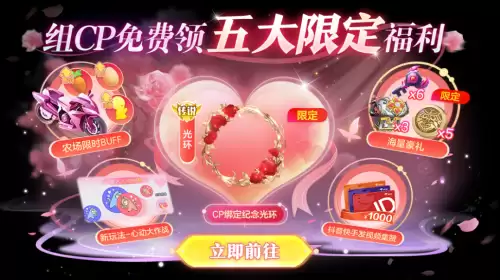 情人节怎么能少了浪漫的仪式感?2月14日-3月7日登录游戏,和CP一起完成任务,即可免费领取情人节传说光环「玫瑰之恋」!这款光环以玫瑰为主题,象征着独一无二的爱与浪漫。戴上它,你就是波拉哩最闪亮的那颗星!任务排行榜第一名的CP还可领取情人节限定专属V认证!