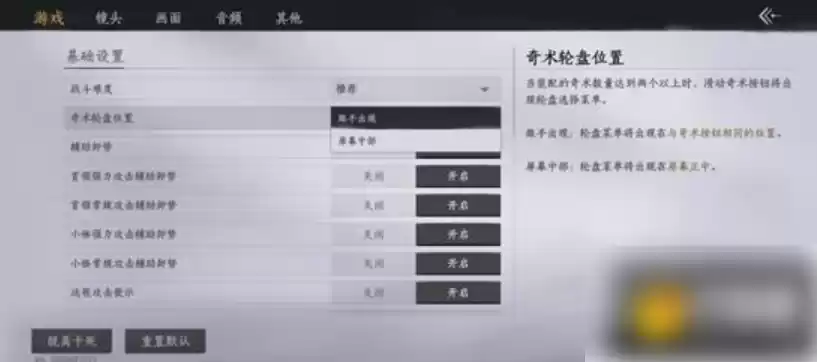 如果小伙伴们使用不习惯系统模式,可以打开燕云手游设置,在操作设置栏目,修改奇术的释放方式,选择“屏幕中部”。