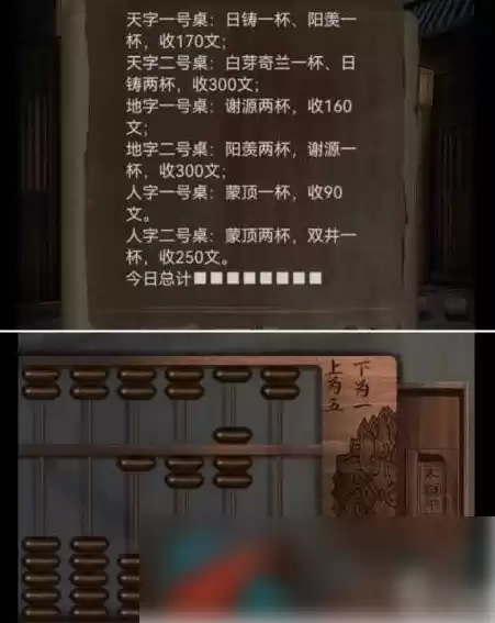 4、根据墙上信息移动茶罐获得叶子戏牌,按照总计拨动算盘获得戏牌;