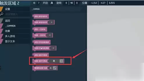4、将设置地形可修改后面的设置参数改为真,完成设置修改。