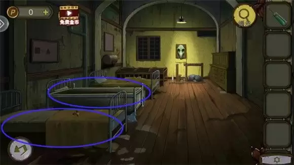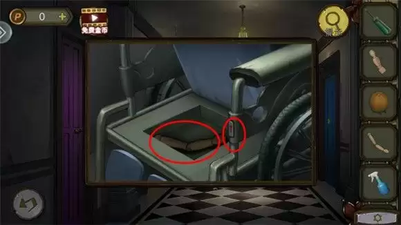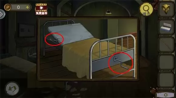 摇杆装到病床上,拿到床下的铁钩。铁钩、木棍、钉子组合,拿到缸里的紫色钥匙。