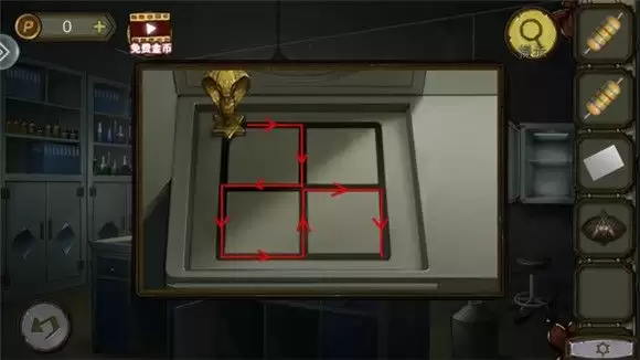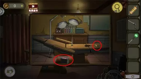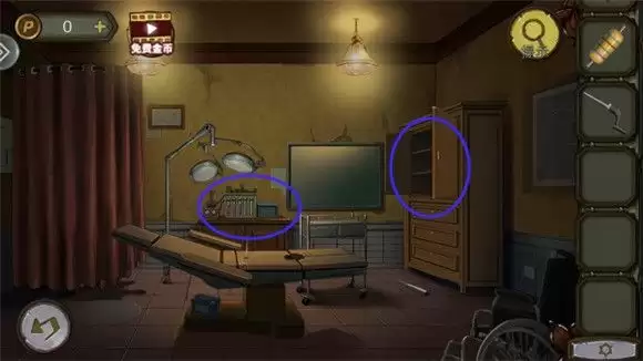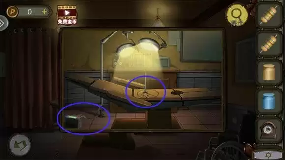 柜子里拿到钟表和旋钮,钟表按手术台上的影子调好时间,拿到海马钥匙。