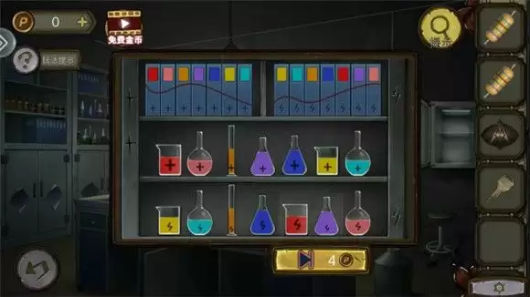 柜子上把书和药水排好,出现隐藏门,钥匙开门。