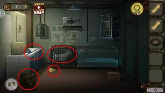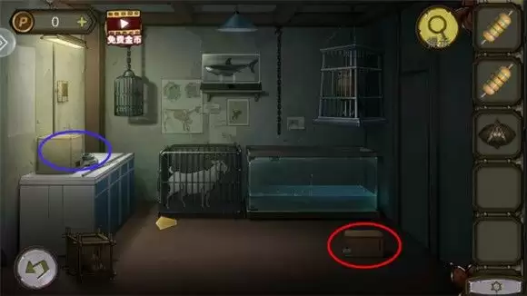 在鹿头旁边拿到钥匙,打开蓝房的笼子,拿到电磨。