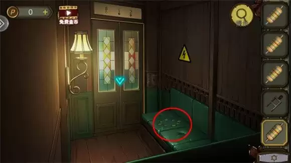 灯的机关解开拿到指针,指针装到椅子的机关上,根据柱子上的线索解开,拿到花铜卡和铁桶。