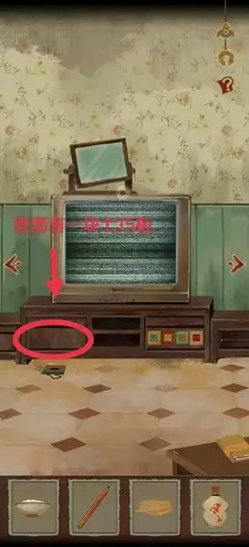 11、我们移动画面发现,电视机打开里面有不同颜色飞艇下吊着密码,根据飞艇颜色对应密码外圈颜色,解出密码,拿如意把如意给禄神,获得4骰子。