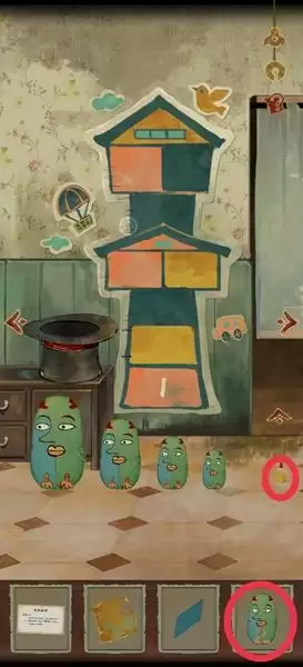 3、我们这里的七巧板判定范围有点小,最好多点几下,开始俄罗斯套娃、收集胶水以及最小娃、七巧板容易被忽略。