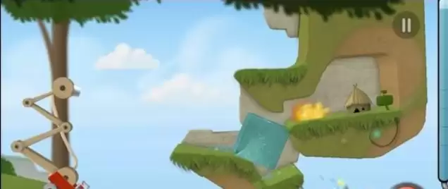 观察地图,可以看到一个蓝色水箱。中间是着火点。直接用水扑灭是做不到的,必须要做一个水通过的路径。这时候,用水将蓝色水箱从高处推到下方,注意水力大小,尽量用点触水开关。谁想掉落之后,水力推到右方,路径完成,灌水,就可以浇灭着火处了。