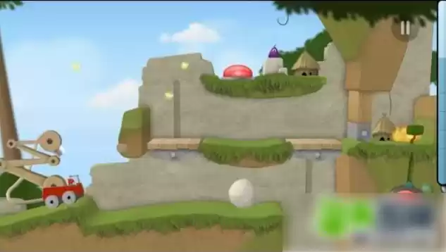 下方有个圆形石头。用水推动石头向右前进,等升降机下来之后,将石头推到上面。石头被带到上层再利用同样的原理,把石头再次带到左边的升降机,升到顶层。推动石头,压住红色按钮,这时候门就打开了,就能浇灭着火的房屋了。