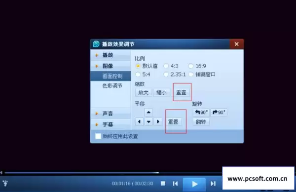 2、进入“画面控制”选项,此时界面将展示出视频旋转的相关参数设置。