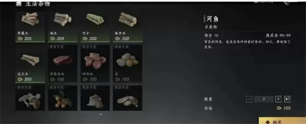 同开封生活杂物商一样,购买粗毛皮、粗矿石,以及各类食材。