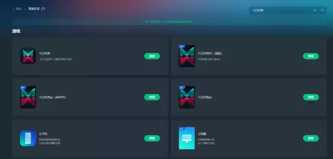 直接在搜索框搜索《七日世界》,即可看到手游和端游两个版本的《七日世界》,即可免下载启动畅玩啦。