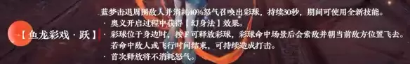 蓝梦击退周围敌人并消耗40%怒气召唤出彩球,持续30秒,期间可使用全新技能。