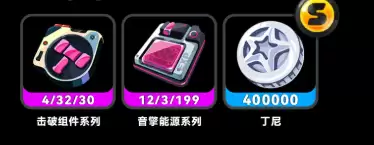 击破组件系列*4/32/30、音擎能源系列*12/3/199、丁尼*400000。