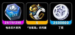 电击芯片系列*25/75/250、「仓鼠笼」访问器*5、丁尼*2500000。