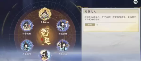 在开局的时候挑选天赋还是比较重要的,建议选择天眷之人和丹道宗师。天眷之人可以给后续的发展带来很多的优势,能够起到辅助的作用。丹道宗师则可以轻松的解锁炼丹的玩法,这就是获取资源的关键,想更进一步的话,那别忘记还需要去选择有资质的灵脉五道。