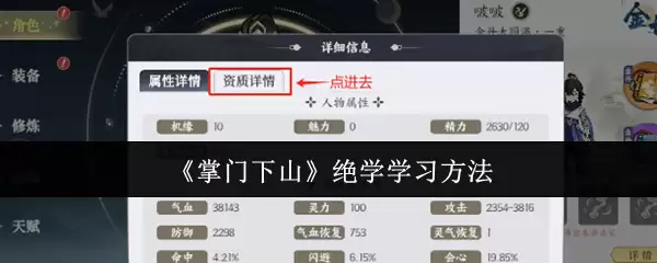 玩家可以先点击资质详情看一下当前的条件,然后学习绝学,那还需要符合三重标准,其中就包括天灵根、地脉感、刀锋魄只有符合标准,才能够有机会去参加学习。