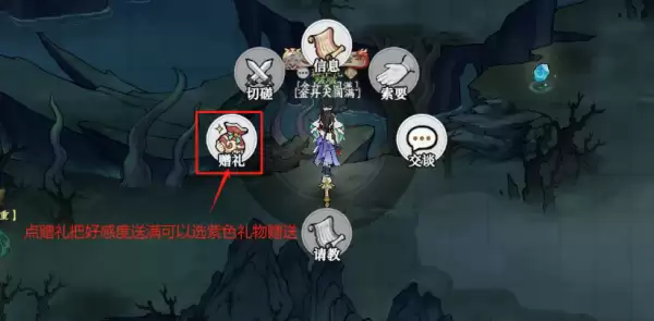 玩家在点击之后可以进入到下一个环节,这里就有一个赠送礼物的方式,通过赠送礼物就能有效拉近和掌门之间的关系。在经过赠送礼物之后,好感度就会逐渐的提升,而等到好感度满了之后,那自然就可以选择去点击学习。