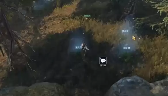3、击败盗猪贼对话后去找小猪崽追着光圈找,采摘猪儿草后对着猪崽用